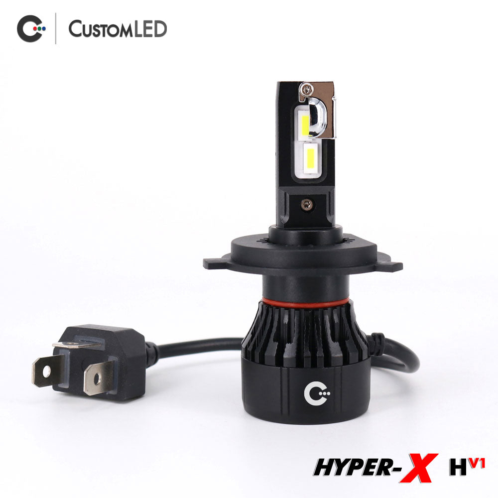 Custom LED is proud to present our line of high-performance LED Headlight Bulbs for Motorcycles and Automobiles!  We have incorporated several key design features which make these LED Headlight Bulbs perform incredibly well.  Our High Performance LED Headlight Bulbs are durable, incredibly bright, intelligently managed, and compact to assure compatibility with most vehicles that use an H4 Headlight Bulb.